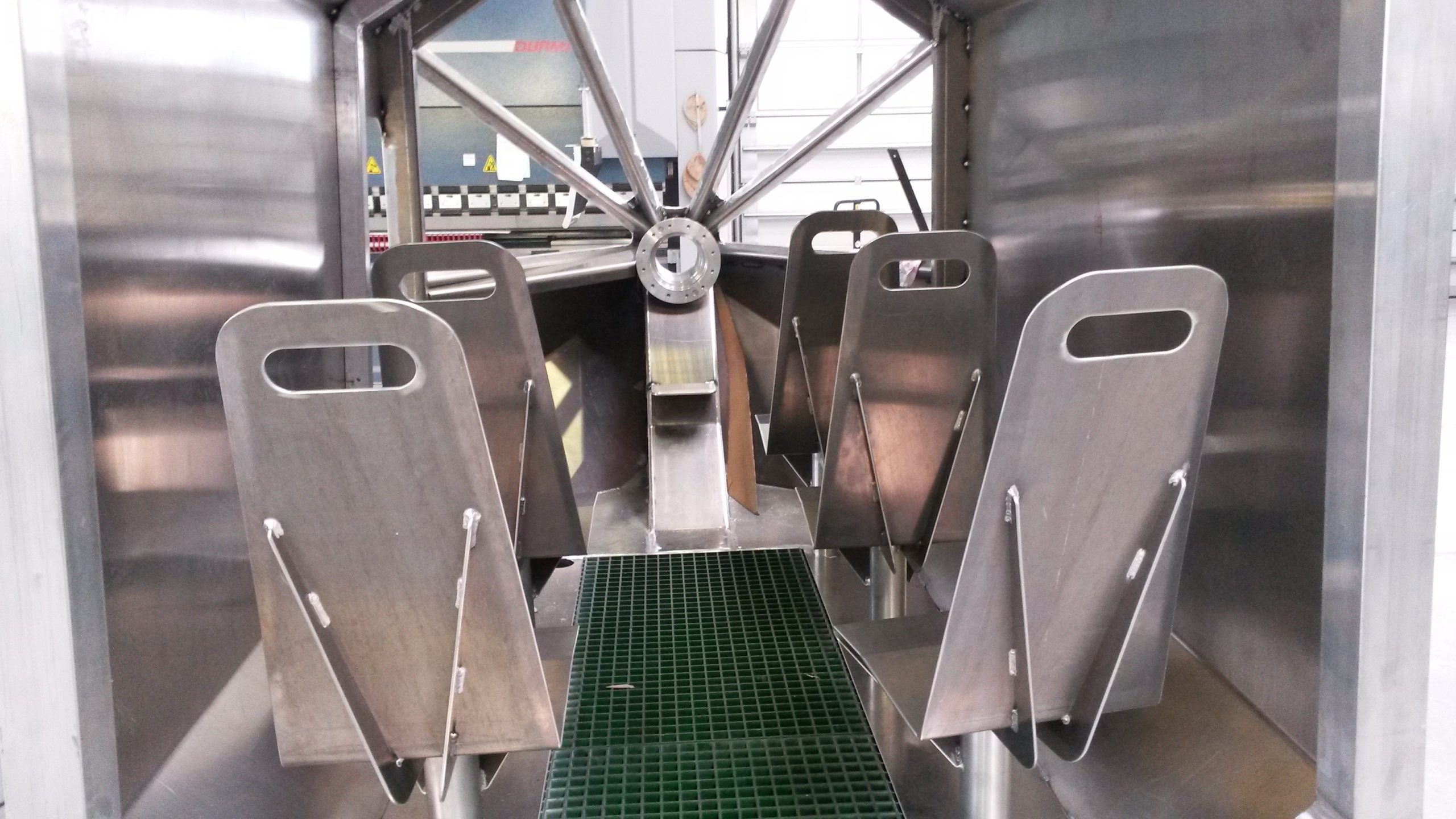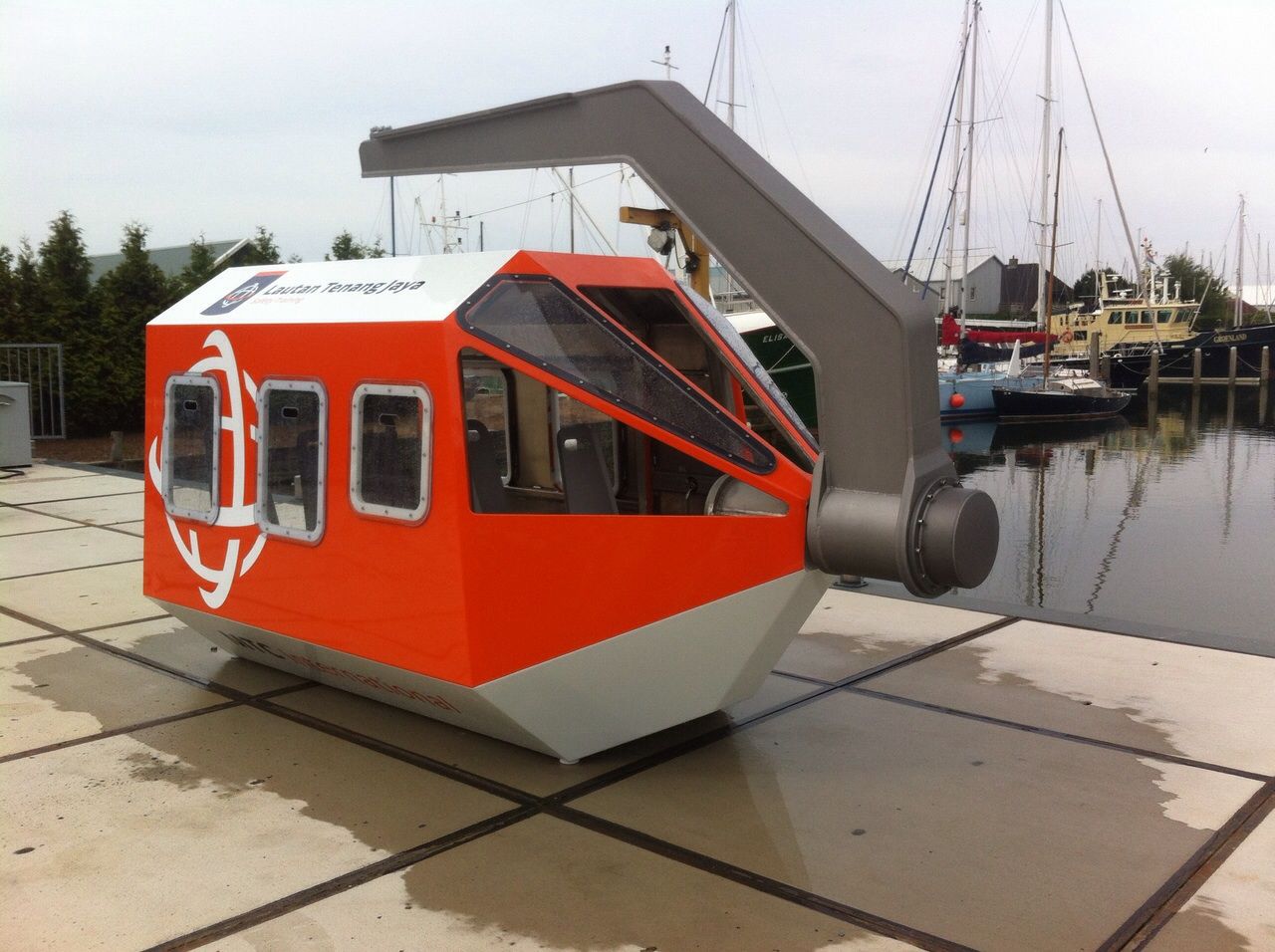 IDengineering heeft de gehele hijsconstructie, draagarm en helikopter simulator ontworpen. De aluminiumdraagarm is voorzien van een hydraulische rotatiemotor die de HUET kan draaien tijdens de tewaterlating. Bij het ontwerp stond veiligheid op 1, zo heeft de HUET twee onafhankelijke hijsdraden en komt bij stroomuitval altijd weer boven water.